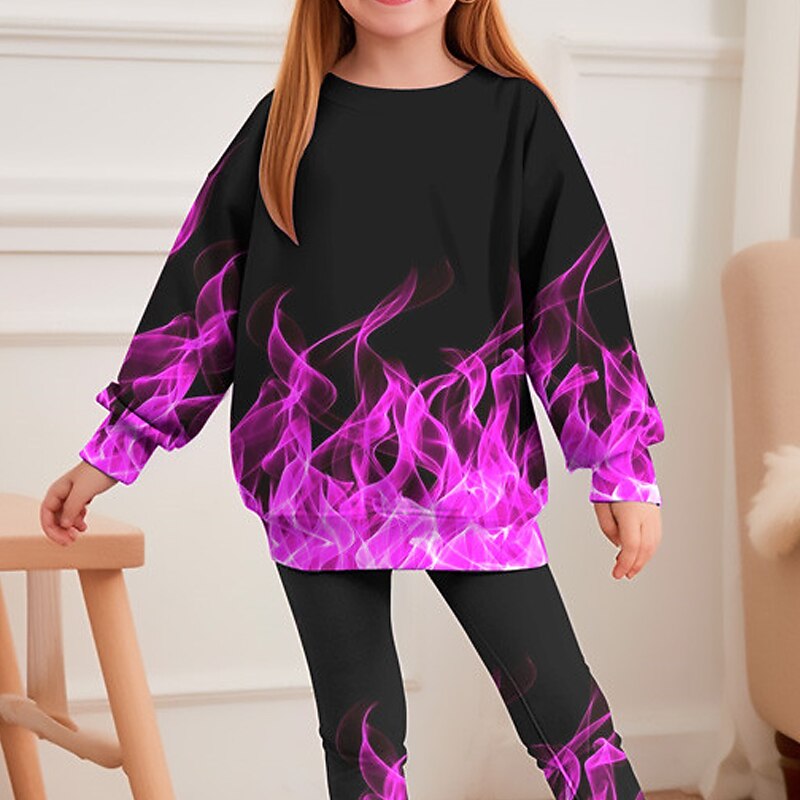 More information about Girls' 3D Graphic Gradient Ramp Sweatshirt & Sweatpants Set Long Sleeve 3D Print Fall Winter Active Fashion Daily Kids 3-12 Years Outdoor Vacation Date Regular Fit