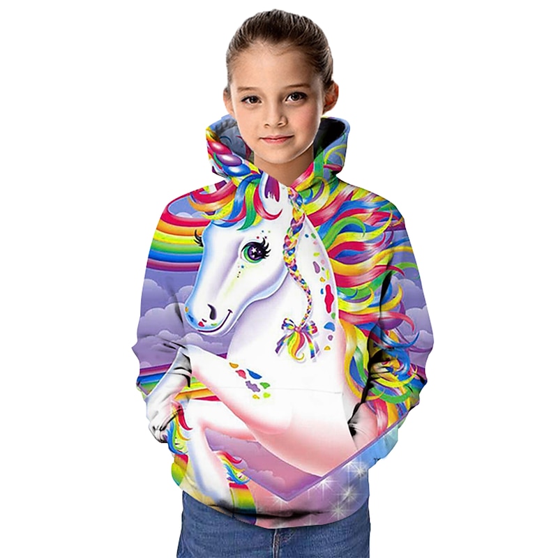 Why Choose Kids Girls' Unicorn Pink Hoodie & Sweatshirt 3D Print Tops Long Sleeve Rainbow Heart Sporty Blushing Pink Children Tops Active Cute?