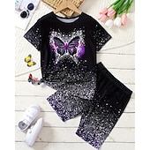 trending ! Girls' 3D Graphic Butterfly T-shirt & Shorts Set Short Sleeve Summer Spring Sports Fashion Daily Kids 4-12 Years Crew Neck Outdoor Vacation Sports Tailored Fit