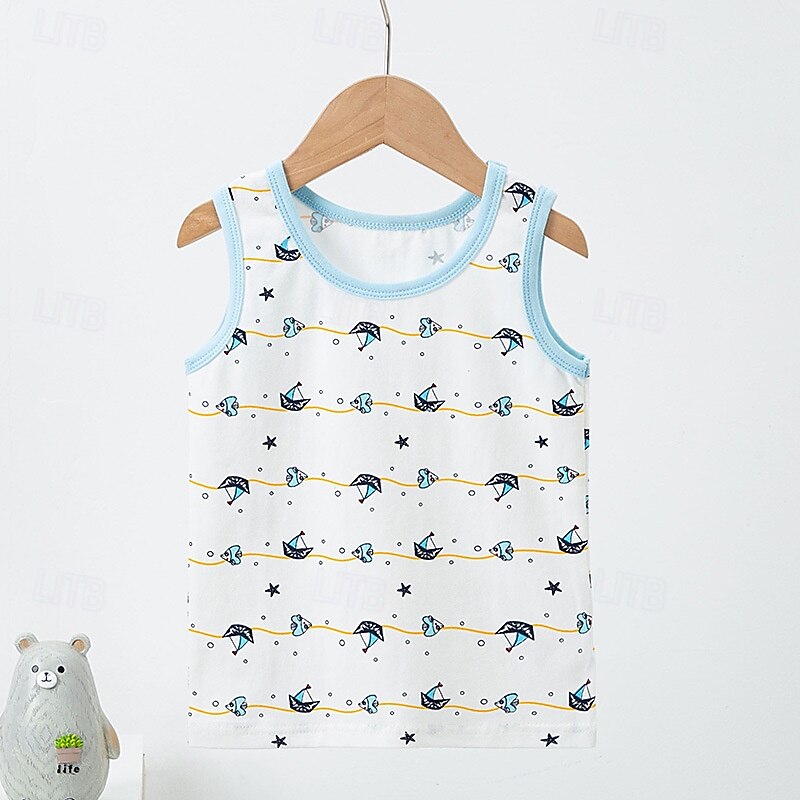 trending ! Kids Boys Tank Tee Cartoon Sleeveless Children Top Going out Cool Basic Summer White 4 years+