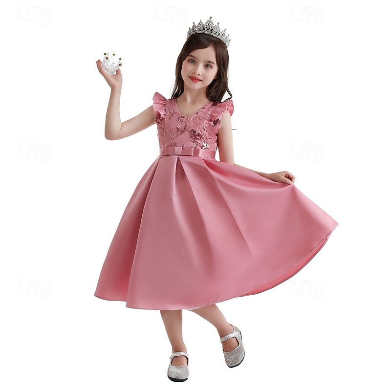 More information about Kids Girls' Party Dress Floral Sleeveless Performance Birthday Tie Knot attractive Sweet Cotton Knee-length Party Dress Swing Dress A Line Dress Summer 4 years+ Champagne Yellow Pink