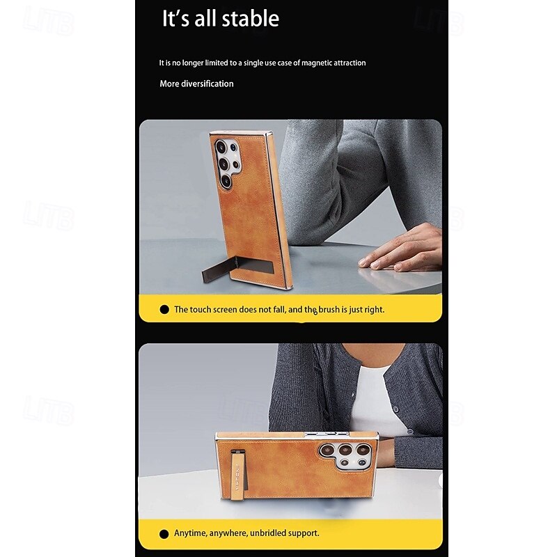 trending ! Phone Case For Samsung Galaxy S25 S24 S23 Ultra Plus Back Cover with Stand Holder Shockproof Retro TPU PU Leather