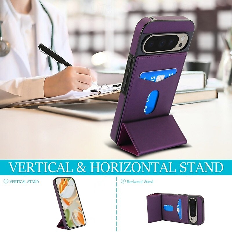 More information about Phone Case For Google Pixel 9 Pro Pixel 9 Pro XL Pixel 8 Pro Pixel 8 Pixel 9 Back Cover with Stand Holder Magnetic Card Slot Retro TPU PU Leather