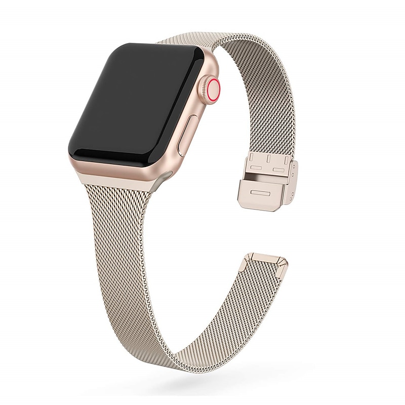 Highlights - sophisticated narrow metal band compatible with many Apple Watch Series, including Series 8, 7, 6, 5, 4, 3, 2, 1 and SE Sport Edition. - Choose the most comfortable size for yourself with the upgraded fixed classic buckle and different band sizes available. - Unique lightweight metal material with greater flexibility and narrower width for comfortable daily use and a new stylish look. - Easy to install or remove with strong connectors that securely lock the dial of the watch. - Fashionable streamline design with a polished classic buckle that is anti-slip and sweat-absorbent. - A variety of colors and styles to personalize your smart watch - a great choice for both men and women. Perfect for everyday use. superior materials and excellent craftsmanship ensure long-lasting durability.