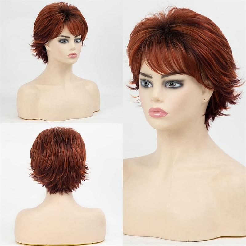 $29.99 - Short Mixed Brown Pixie Cut Wigs for White Women Shaggy Layered Red Brown Curly Wig with Bangs Natural Wavy Synthetic Hair Wig for Daily Party 2025. Shop for cheap Older Wigs online? Buy at lightinthebox.com on sale today!