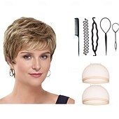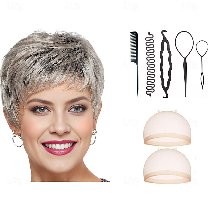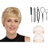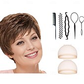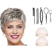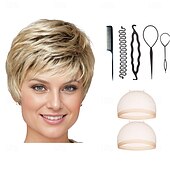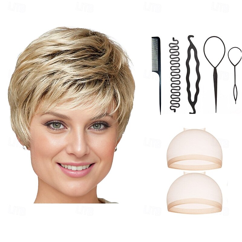 $34.99 - Short Ultra-Chic Pixie Wig with Neat Straight Layers / Multi-tonal Shades of Blonde Silver Brown and Red With 2PCS HD Wig Cap and Hairdressing Tool Set 2025. Shop for cheap Older Wigs online? Buy at lightinthebox.com on sale today!