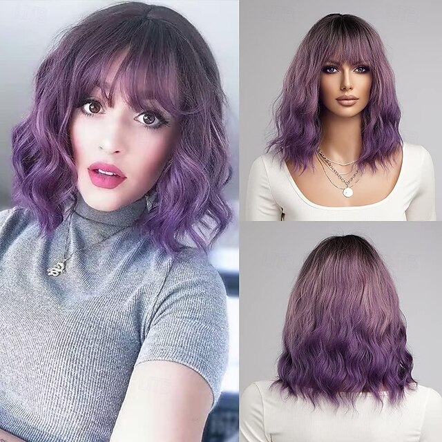 $19.99 - Grey Green Pink Blonde Purple Wig for Women Ombre Purple Bob Wig Mardi Gras Wigs Short Curly Wavy Black to Purple Wig with Bangs Synthetic Heat Resistant 2025. Shop for cheap Synthetic Trendy Wigs online? Buy at lightinthebox.com on sale today!