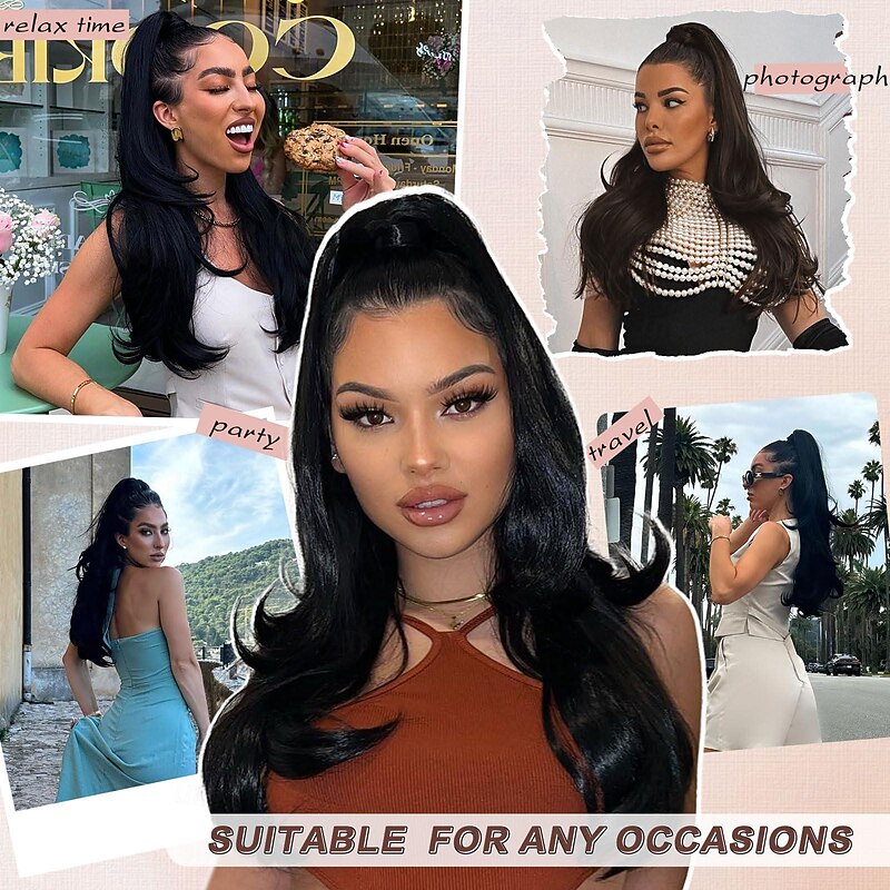 Why Choose Ponytail Extension Drawstring Ponytail Extension for Women 26 Inch Long Dark Brown Wavy Layered Pony Tails Hair Extensions Synthetic Clip in Ponytail Hairpiece for Women?