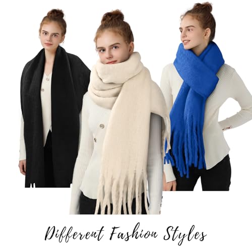 • Size Infor - 82.6"x14" with tassels, medium weight, only 8.3 OZ, wrap the oversized scarf freely around any outfit and it will keep you snug all day long. There are many ways to wear this scarf, can be used as a cape, a blanket,or a shawl.