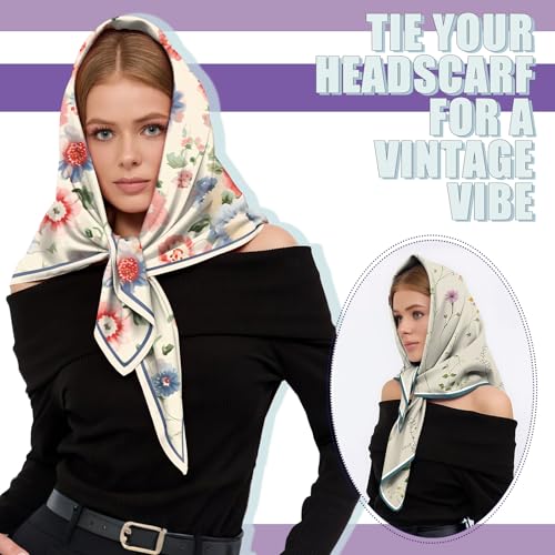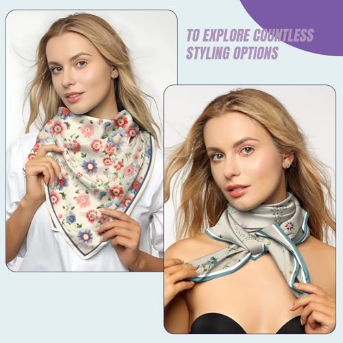 Fabric type: Polyester satinCare instructions: Hand Wash OnlyOrigin: Imported【Product Dimension】The package includes 2 Scarf.Size:27.5 x 27.5 ( 70cm x 70cm).You can wear the scarf on your hair or head or around your neck or as a top.You can also tie it on the strap of your handbag and transform it from casual to elegant.They are perfect for any season.【Soft Fabric】This silk scarf is made of new superior 100% polyester satin,fabric quite bracketed,very comfortable to contact skin.Due to the material of this silk feeling scarf,it is easier to take care of than real silk scarf.(one side printed pattern)【Extensive Usage】This satin scarf is suitable for any occasions,whether attend wedding,party,travel,casual or daily life etc.It can be widely used as a headscarf,hair wrap scarf, headdress,can also shade the sun,prevent wind,dust and even a charming accessory tied onto your handbag.【Main Features】This silk scarf with unique design,simple but fashionable,it matches perfectly with your youth and vitality individuality.Available in multiple style,floral,modern abstract art. The square scarf as a variety of embellishments,highlighting the unique charm of women.【Wonderful Gift】It is really a lovely and excellent gift for your lover,family,friend or coworkers in any festivals,such as Thanksgiving Day,Christmas,New year and Valentine's Day etc.These satin scarf can add some fashion element to their wardrobe and give them a big surprise ! Perfect for everyday use. High quality materials and excellent craftsmanship ensure long-lasting durability.
