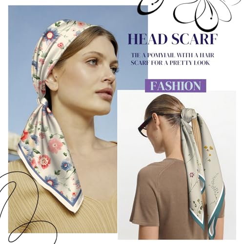 2PCS Scarf Silk Feeling Satin Head Hair Wrap Lightweight Large Square Fashion Cute Aesthetic 27.5 Inches for Women
