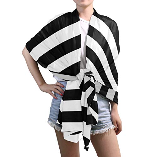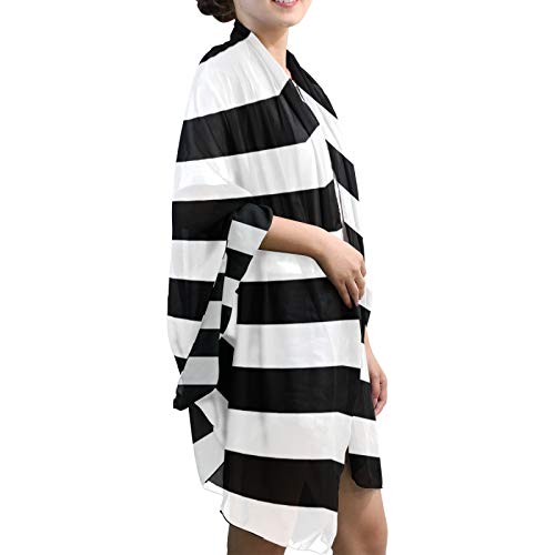 MNSRUU Black White Striped Scarf for Women Lightweight Sheer Fashion Scarves Silk Feeling Scarf Sunscreen Shawls Wrap