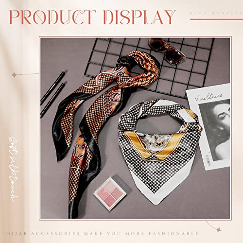 SATINIOR 35 Inch Silky Head Scarf 2 Pcs Large Square Neck Scarf Sleeping Hair Wrapping Satin Bandana for Women(Vintage Color,Vintage Style)