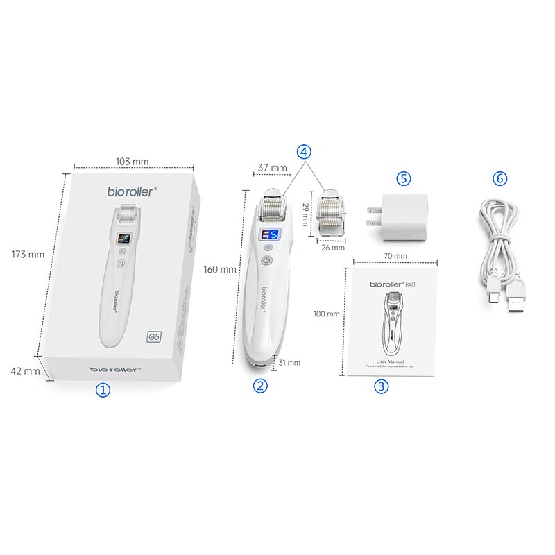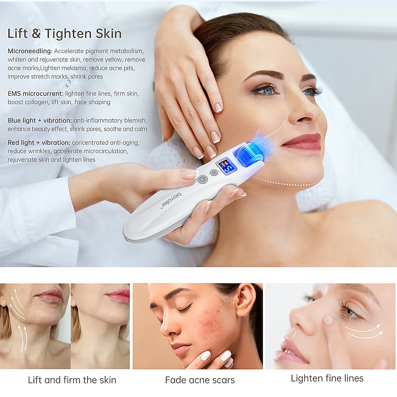 Highlights The electroporation micro-needle roller (model G5) adopts electroporation technology, LED phototherapy and vibration massage. 1. The electroporation roller micro-needle adopts the electroporation technology, LED phototherapy and vibration massage principle. Electro-perforation technology is one of the principles of micro-needle, which has specific penetration to the skin, helps skin care products absorb more deeply and better, stimulates aging cells, improves cell activity, promotes collagen reorganization, and restores skin elasticity. 2. The micro-needle belongs to minimally invasive repair, which can effectively enhance the treatment and reduce the tingling sensation caused by micro-targeted skin wounds by combining with the principle of electroporation technology. For example, to treat pockmarked skin, micro-needles with needle length β₯ 1.0mm should be used to roll on the skin, but the tingling feeling is obvious; If G5 is used, the needle length can be shorter than 1.0mm. Through the principle of micro-needle superposition electroporation, it can also meet the deep treatment of skin, greatly reduce the trauma of micro-pointed skin, and reduce the tingling sensation of skin. 3. LED phototherapy: help skin heal and promote the absorption of cosmetics. 4. Vibration massage: help skin cells to rub, enhance cell activity, reduce the pain of micro-needles, and promote the absorption of skin care products. faultless for everyday use. premium materials and excellent craftsmanship ensure long-lasting durability.
