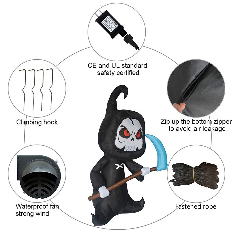 Why Choose 6FT Halloween Decoration Inflatable Halloween Grim Reaper Blow Up Yard Decoration Clearance with LED Lights Built-in for Holiday/Party/Yard/Garden?