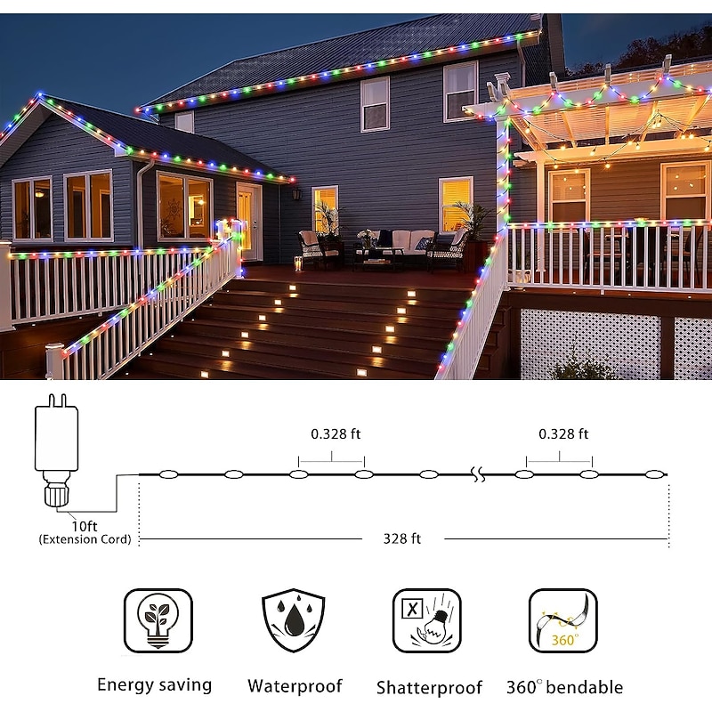 More information about Outdoor IP67 Waterproof LED Strips Lights 328ft 100m Flexiable Christmas String Lights 1000 LEDs Multicolor Creative String Lights for Patio Lawn Garden Holiday Lights Party Holiday Wedding 29V