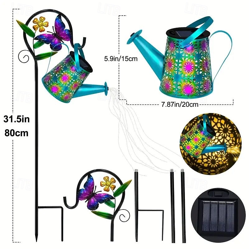$37.99 - Solar Watering Kettle Light with Colorful Butterfly Shepherd Hook Waterproof Solar Garden Light Wrought Iron LED Outdoor Garden Light for Courtyard Terrace Sidewalk Lawn Decoration 2025. Shop for cheap Landscape Lights online? Buy at lightinthebox.com on sale today!