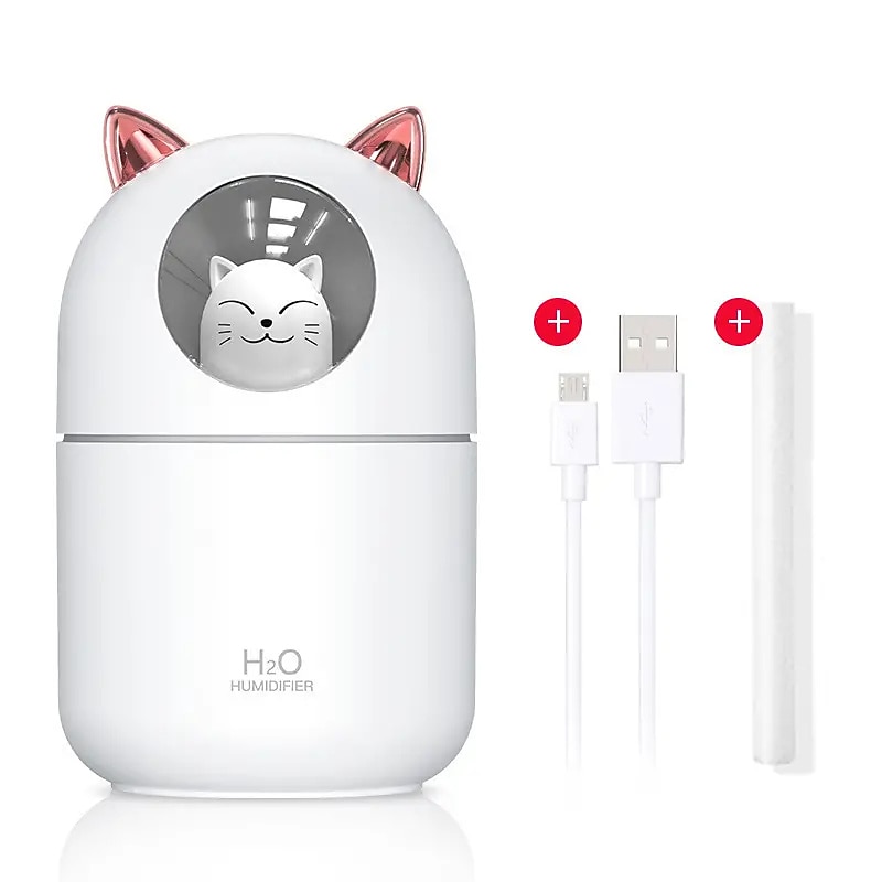 trending ! Cute Cat USB Mini Fragrance Humidifier Household Suitable Cool Mist with Adjustable Mist Mode 300ml Water Tank Waterless Auto Shut-off for Bedroom Home Office