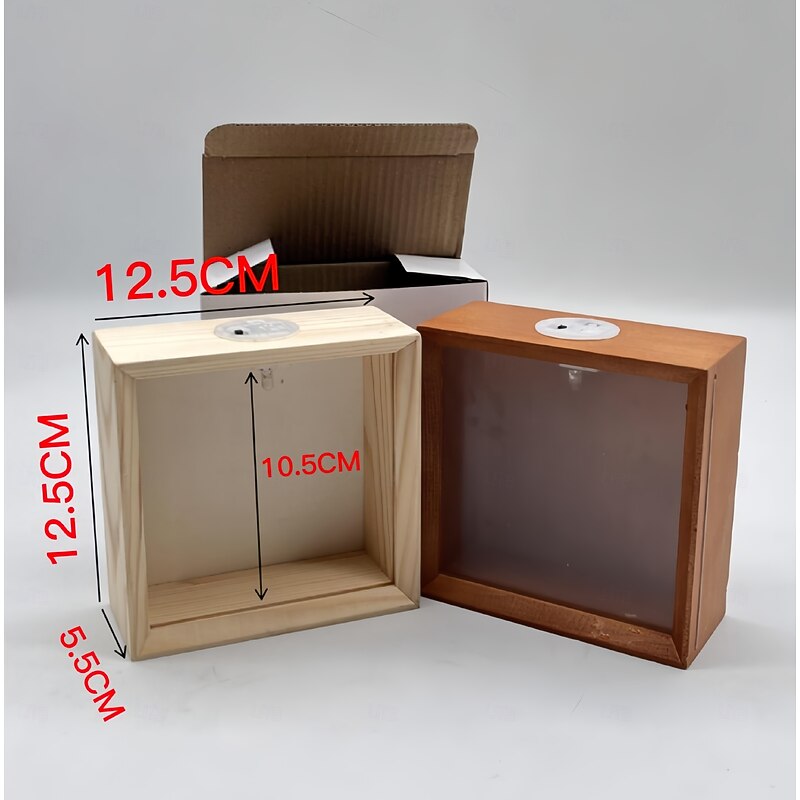 trending ! Wooden Photo Frame Night Light -Multifunctional LED Display Box with Acrylic Panel Holiday Home Decor Lamp 12.5CM Visible Wood Gift Box for DIY Craft Storage and Festival Decorations Gifts