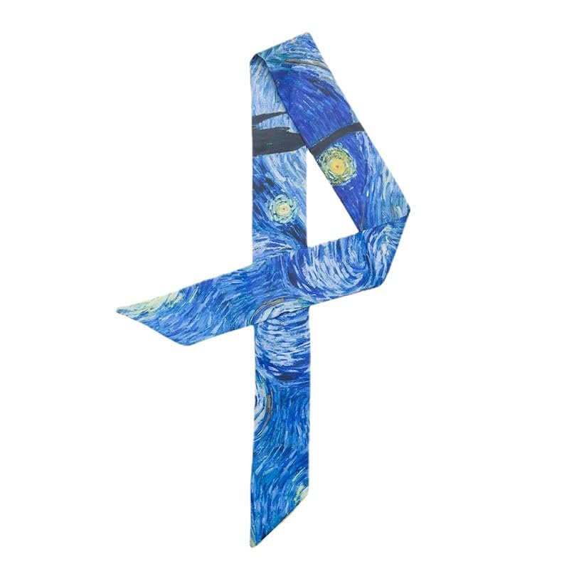 Women's Van Gogh Oil Painting HairBand Long Ribbon Mini Scarf Fashion Decorative Strap of Handbag