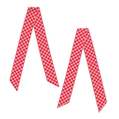 trending ! Red Pink Checkered Women's Head Scarf Thin Long Neck Scarves Fashion Hairband Waistband Purse Scarf