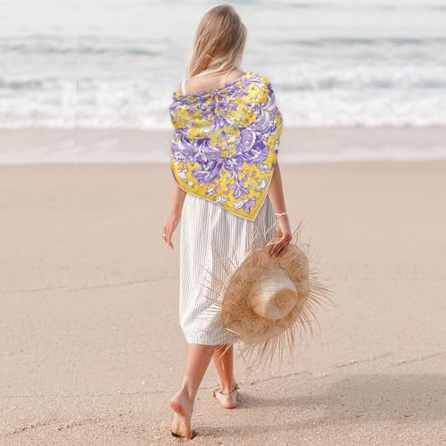Retro Flower Pattern Purple and Yellow silk scarf pashmina elegant for women's for christmas scarf bufanda elegante para mujer