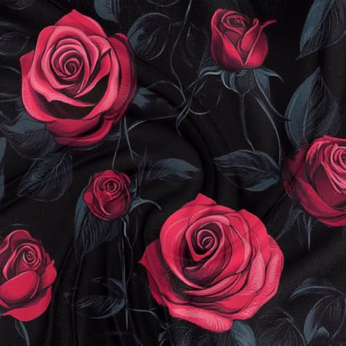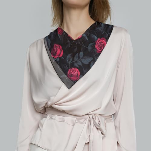 Square Head Scarf Red Rose Flowers Bandana Silk Feel favor Hair Wrap Shawl Lightweight Scarves Fashion Accessories for Women Girls