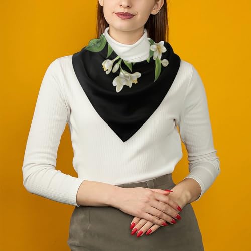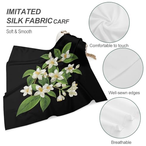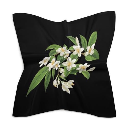 Jasmine Flowers Stem Womens Silk Scarf supple Bandana Head Scarf Hair Warp