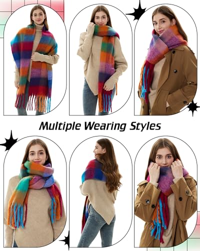 • Fashion Design: thick plaid scarf features a bold plaid pattern with vibrant macaroon shades and tassels for an added touch of fashion