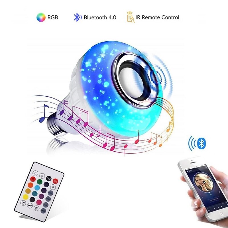 This Bluetooth Light Bulb Speaker 12W Smart LED Music Play Bulb E27 E26 B22 BaseColorfulWireless RGB LED Light Bulbs With 24 Keys Remote Control for Bar Decoration Home KTV Party Restaurant combines elegant design with practical functionality. Every detail has been carefully considered to ensure you get the finest possible experience. The supreme construction means this product will serve you well for years to come.