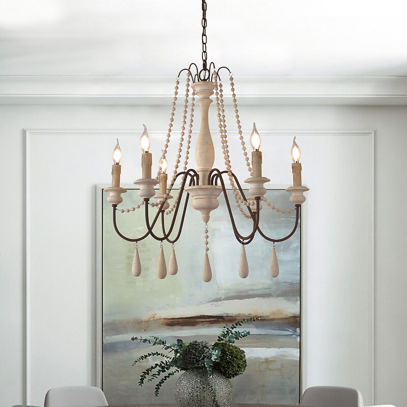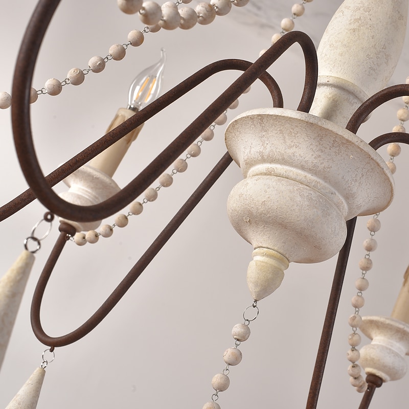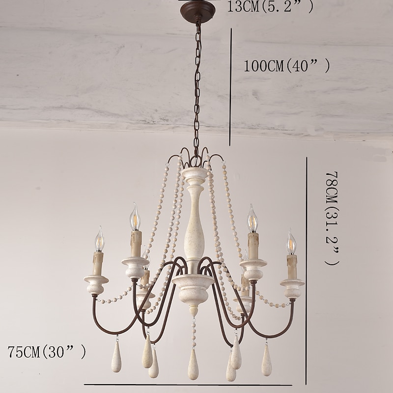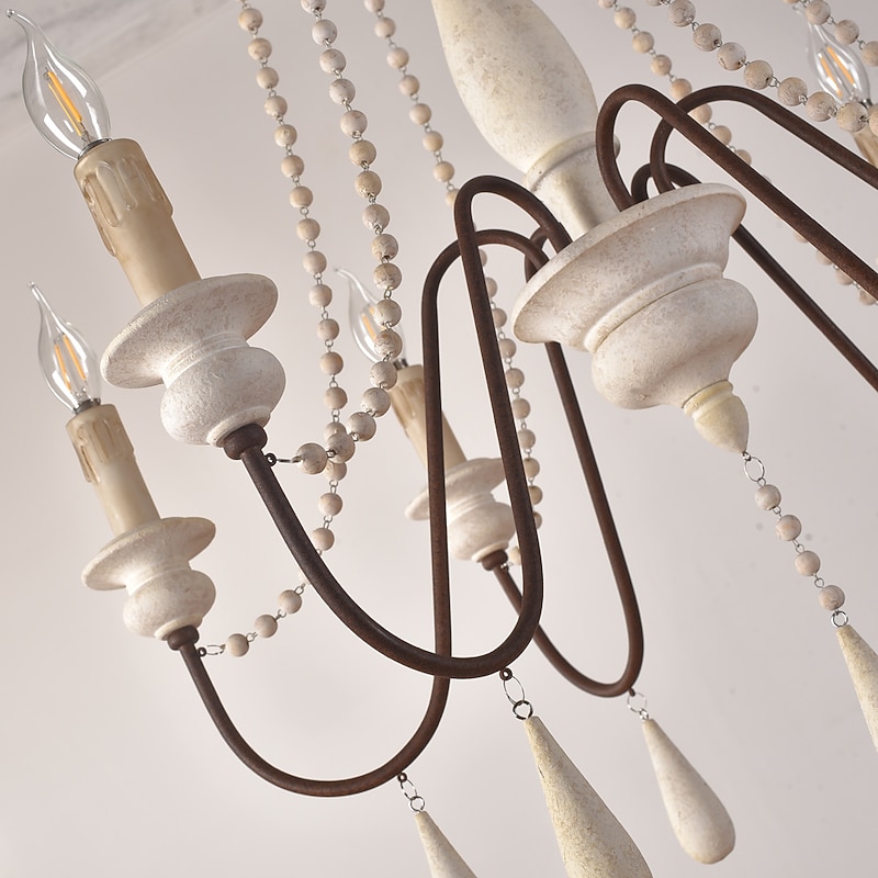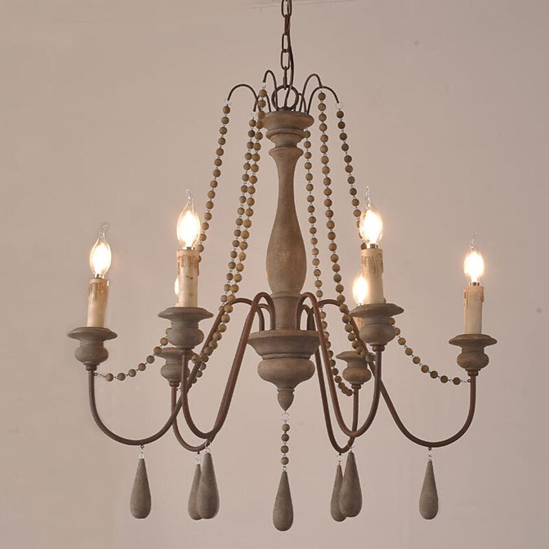trending ! 6-Light 6 Lights Vintage Candle Chandelier/ Wood Pendant Light Coffee Bar Rustic Lamp for Living Room Dinning Room Resturant Lights/ E12/E14 without Bulb
