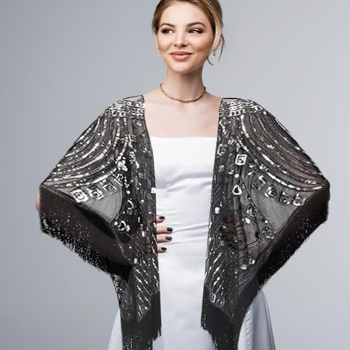 1920s Sequin Beaded Shawl Wraps, Sequin Cloak Retro Cloak Party Banquet Carnival Dance Supply Wrap, Fringed Evening Cape Scar