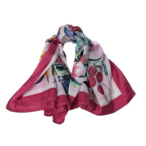 trending ! Tropical Floral Silk Neck Scarf | Pink Fruit Print, Versatile Fashion Accessory for Women - Lightweight & plush