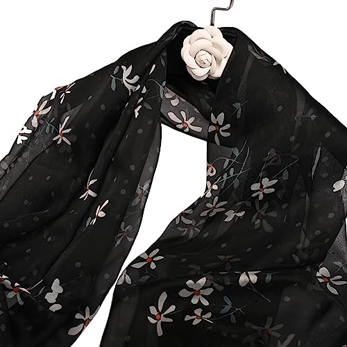 100% Pure Silk Scarf for Women Lightweight Print Floral Pattern Scarf - 71.5'' x 43.5’' Breathable Scarf - Gift Packed