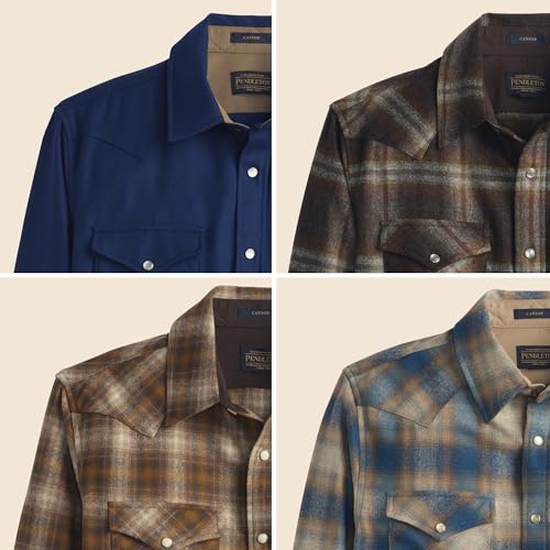 trending ! Pendleton Canyon Men's Shirt, Long Sleeve Flannel Shirt, 100% Virgin Wool - Regular Fit