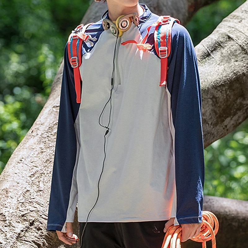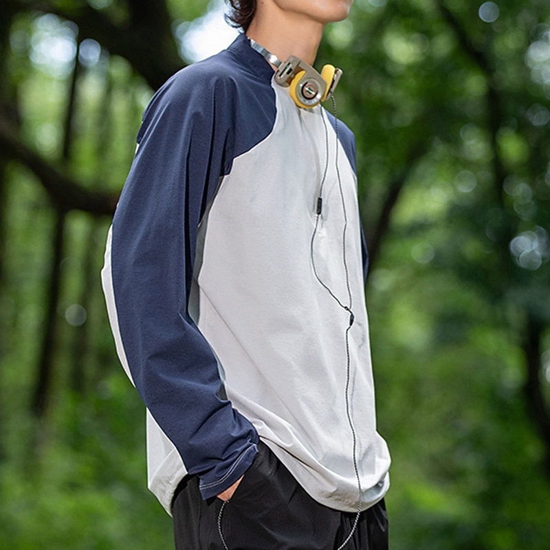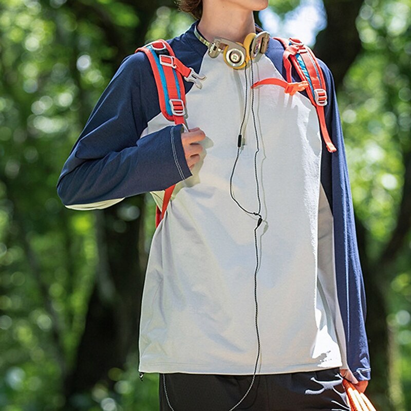 More information about Men's Hiking Shirt Quarter Zip Shirt UV Protection Shirt Long Sleeve Top Outdoor UV Sun Protection expedient Dry Polyester Patchwork White Blue Grey Tennis Camping / Hiking / Caving Running