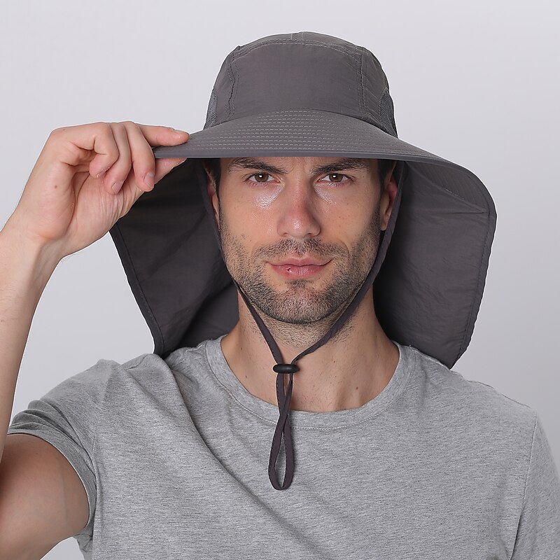 trending ! Wide Brim Sun Hat with Neck Flap, UPF50+ Hiking Fishing Hat for Men Women Summer Outdoor Portable Breathable hasty Dry Ultraviolet Resistant Hat Solid Color Black Purple Red Hunting Fishing Climbing