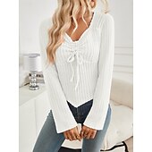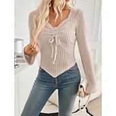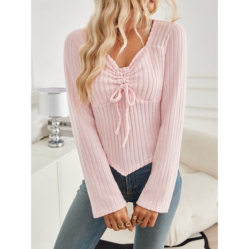 $22.99 - Women's Blouse Solid Color Stylish Casual Long Sleeve V Neck Regular Tops Daily Drawstring Black White Pink Apricot Spring Fall Winter 2025. Shop for cheap Plain Tops online? Buy at lightinthebox.com on sale today!