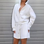 $37.99 - Women's Tracksuit Zip Up Hoodie Track Shorts Drawstring Pocket Solid Colored Clothing Suit Spring Black White Gym Training Running High Waist Windproof Lightweight Moisture Wicking Long Sleeve Sport 2025. Shop for cheap Tracksuits online? Buy at lightinthebox.com on sale today!