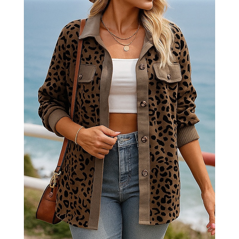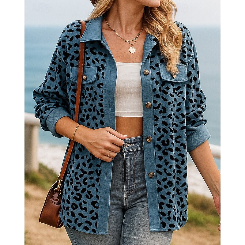trending ! Women's Fall Outfits Shirts Jacket Coats Buttons Long Sleeve Top Athleisure Fall Leopard Fashion Outdoor Travel Sportswear Activewear Pink Blue Beige