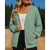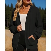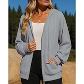 More information about Women's Fullzipper Jacket Hooded Sweatshirt Pocket Long Sleeve Top Athleisure Fall Solid Colored Fashion Workout Outdoor Training Sportswear Activewear Black White Pink