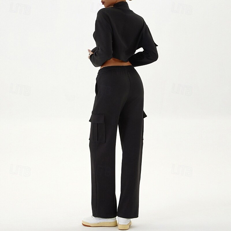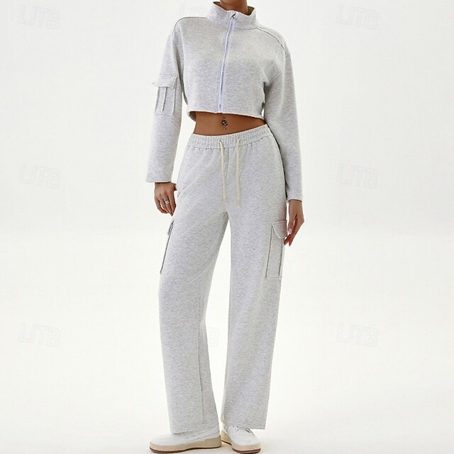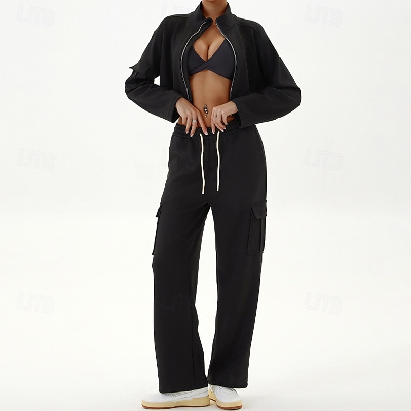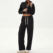 $73.99 - Women's Lounge Sweatsuit Sport Cargo Suit Fall Pocket Full Zip Solid Color Clothing Suit Black Grey Outdoor Running Yoga High Waist Windproof Lightweight Warm Long Sleeve Sport Activewear Loose Fit 2025. Shop for cheap Sets & One-Pieces online? Buy at lightinthebox.com on sale today!