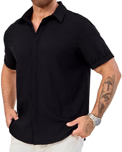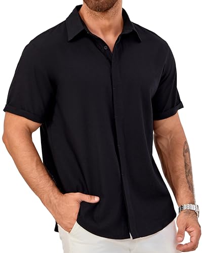 Men's Short Sleeve Button Down Shirt Lightweight Stretch Blend Summer Shirts Casual Vacation Beach Tops