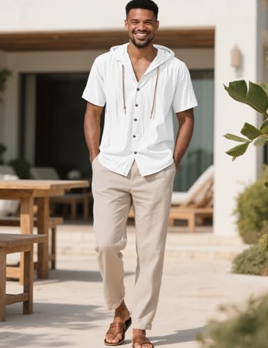 More information about Men's Cotton Linen Shirts Short Sleeve Casual Sweatshirts Button Down Summer Beach Shirts with Hoodies