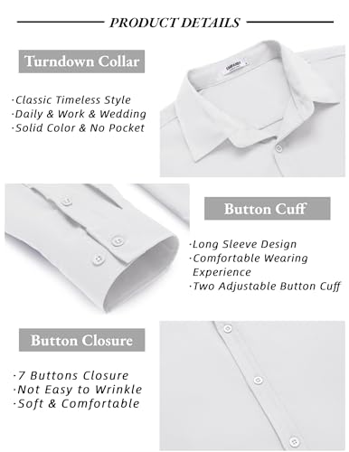 • vintage Design: Mens regular-fit dress shirt is classic solid color and no pocket design, featured with long sleeve, turn down collar, adjustable cuff, 7 buttons closure for a tailored look. The long sleeve oxford dress shirt create a casual and sophisticated look for you. Mens long sleeve button down shirts can be seen in both formal and casual settings, reflecting not only a style of dress but also a lifestyle attitude and cultural symbol