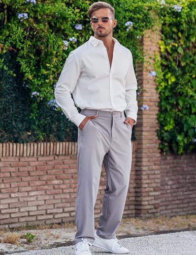 • Occasions: Mens collared shirts long sleeve shirt features fine tailoring, simple style and cozy fabric,are suitable for all occasions, such as daily casual, office, holiday, birthday, beach, party, work, vacation, date, wedding and travel. Long sleeve shirts are also great for sun protection and look great with or without the hem tucked in. This traditional shirt is essential in mens wardrobe