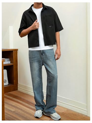 More information about GORGLITTER Men's Cropped Shirt Button Bown Short Sleeve Casual Collar Neck Summer Shirts Crop Top
