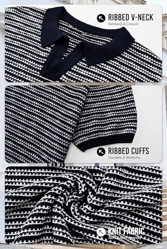Men V Neck Polo Knit Striped Heavyweight Casual Poloshirts Summer Short Sleeve Shirt (S-XXL)
