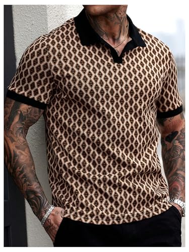 trending ! Verdusa Men's Geo Knitted Golf Shirts Short Sleeve Button Front Casual Collared Shirts