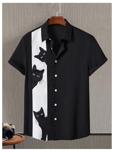 Why Choose Men's Funny Cat Graphic Tees Shirt Color Block Short Sleeve Button Up Shirts?